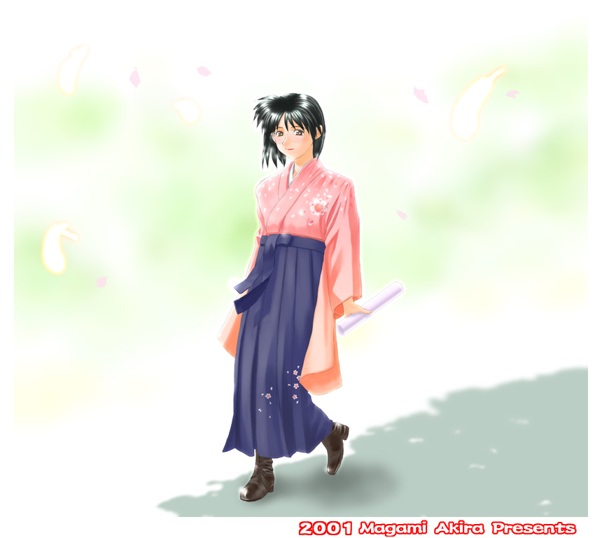 折角なので、卒業の季節に合わせて、和服、袴の女性を描いてみました。