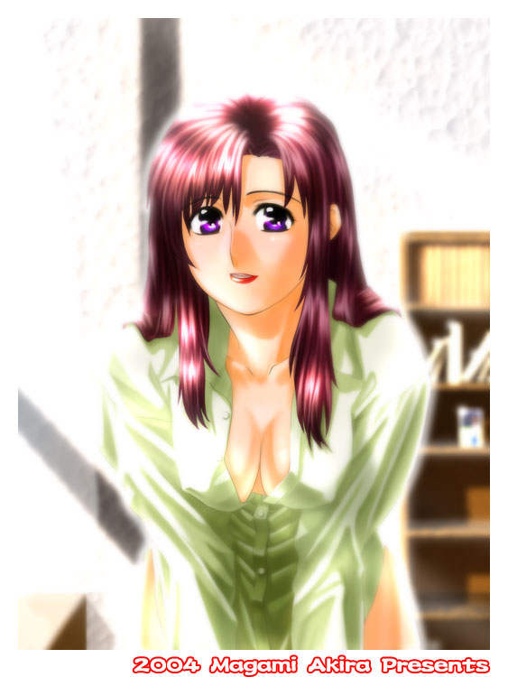前回に引き続き「おねがいティーチャー」のみずほ先生です。 前回のコメントで「次は髪をアップにした先生モードを」なんて書きましたが今回もプライベートモードです。 元々この絵はサイト引っ越しの時の旧アドレスに置く引っ越し告知ページの為に描き始めたものです。 ですので構図的には背景無しで前屈みになっているみずほの正面下に告知文を書いた看板を描くつもりでした。 しかし進行の遅れと移動告知の公開が合わなかった為にこちらは諦め普通の絵にしてしまいました。 構図ありきで背景を描き始めるのはいつものこととは言えちょっとはまる背景を考えるのに難儀して結構手間取りました。 実際には影やハイライトを描き込んだ後だったので光や背景の具合もそれに引っ張られてしまいましたので使えませんでしたが部屋の中をガラス越しになんてのも思いつきました。 そちら方面は又何れ・・・ 無駄にお色気っぽいのは趣味というか告知だったので少しキャッチーにしようと、それだけです。 よく調べたらみずほの薄緑色のブラウスはこういう形ではないのですがまぁ色を合わせたって事で。 タイトルには深い意味はありません(笑)
